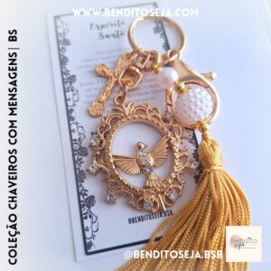 Chaveiro dourado com Espirito Santo, com tassel DOURADO