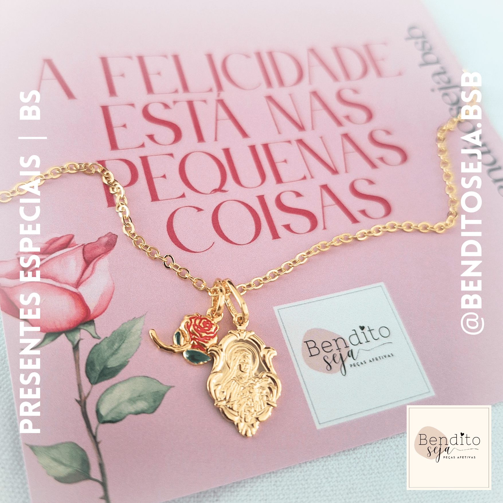 de Santa Teresinha 1,5 cm e pingente rosinha.