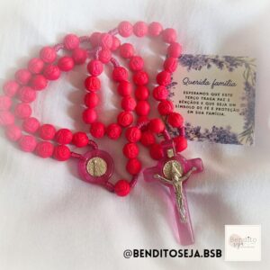 Terço NSra Aparecida com contas de rosas (rosa)