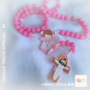 Terço personalizado sensorial infantil perolado rosa/rosa